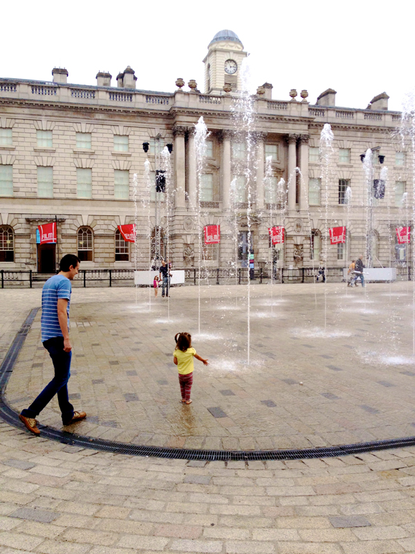 this was one of our first weekends in a long time that we didn't have much on the calendar. which is always nice and welcomed. we spent saturday at the somerset house, enjoying the exhibits and running through the water fountains. {whoever said that it shouldn't be done in a chilled rain is way off!} the tour through the blumenfeld photography exhibit was just stunning. there was room after room filled with hundreds of old vogue and harper's bazaar magazine covers, all shot by erwin blumenfeld 70+ years ago! grace kelly in the 50s? *sigh* that's definitely my chosen era.